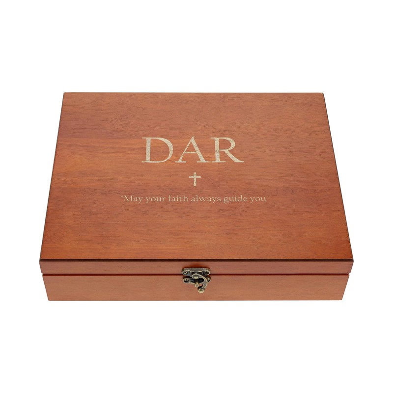 WE Games Wooden Memory Box for Keepsakes – Vintage Decorative Storage Box with Lid - Light Cherry Finish with Engraving