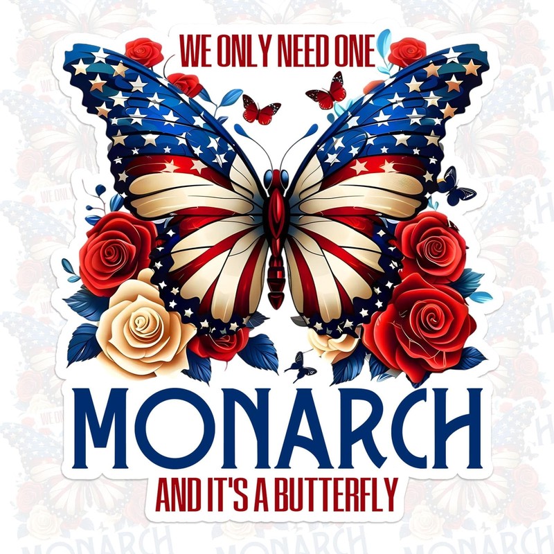 We Only Need One Monarch and Its A Butterfly Sticker Activist Feminist Protest Liberal USA Flag Waterproof Die Cut Vinyl & Transparent DTF Decal for Water Bottle Laptop Car Helmet Gifts for Her Him