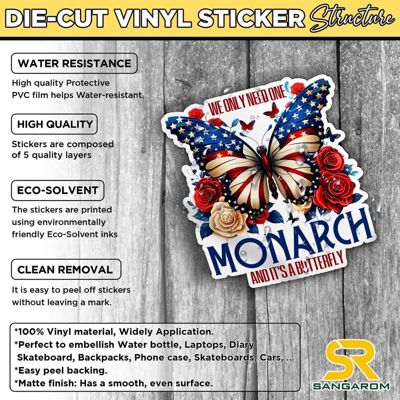 We Only Need One Monarch and Its A Butterfly Sticker Activist Feminist Protest Liberal USA Flag Waterproof Die Cut Vinyl & Transparent DTF Decal for Water Bottle Laptop Car Helmet Gifts for Her Him