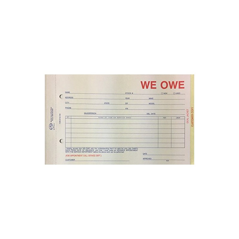 We Owe Form 100 Qty. SA-1506-3 - 3 Part Form (R76M)