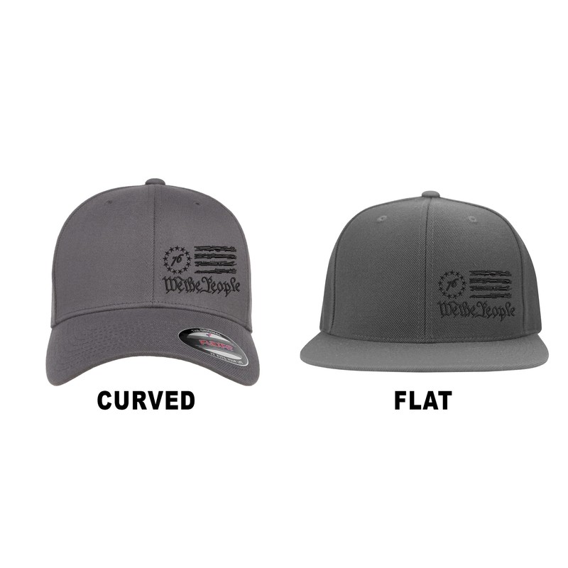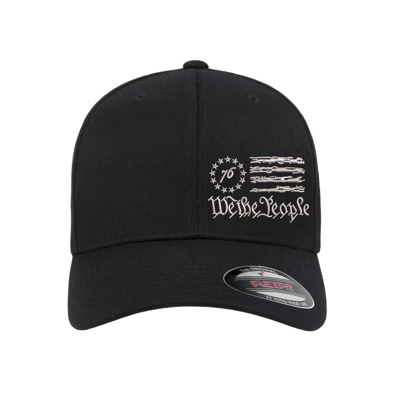 We The People 1776 Flag Side Embroidered Trump Patriotic Republican Flexfit Hat Black Grey Navy Red Olive Royal (US, Alpha, Large, X-Large, Grey Curved)