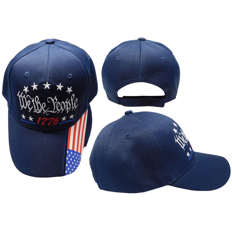 We The People 1776 Navy Blue USA Flag On Bill 100% Acrylic Adjustable Embroidered Cap Hat