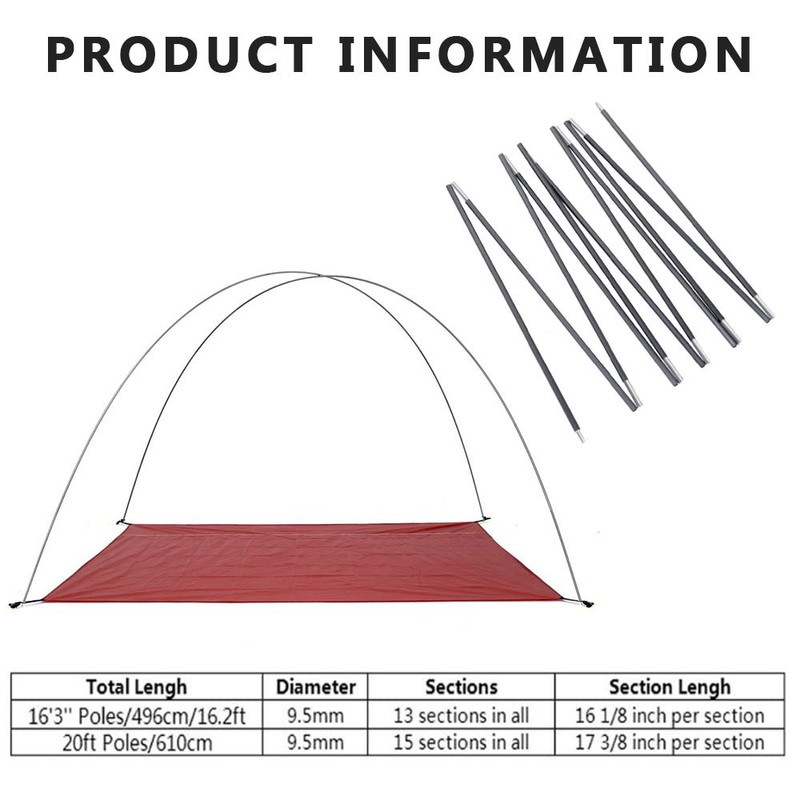 - 【BUILT TO LAST】Made from the highest quality 7001 series aircraft-grade aluminum and high-quality bungee. This ensures the poles can take the bends well whereas many cheaper aluminum poles would have crumpled or snapped. Every Pole Sections are carefully handled for a smooth connection between pole sections for your really quick set-up/takedown