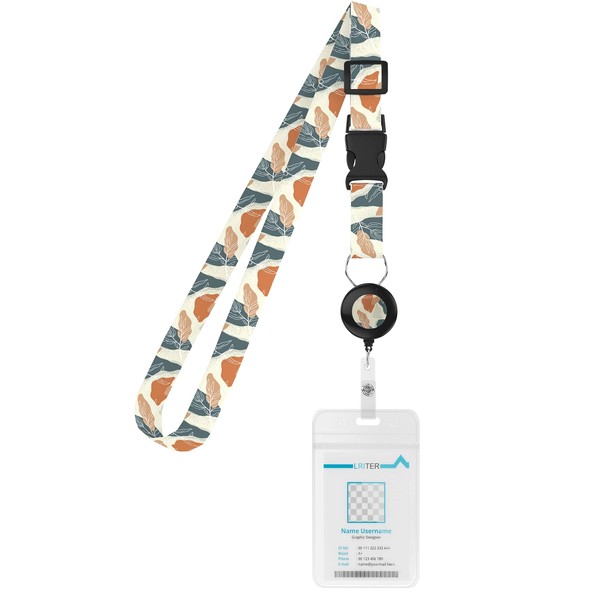Weaninyiu Cruise Ship Lanyard,with Adjustable Badge Lanyard with Detachable Clasp, Waterproof ID Badge Holder for All Cruise Ships and Vessels Key Cards (Abstract Leaves)