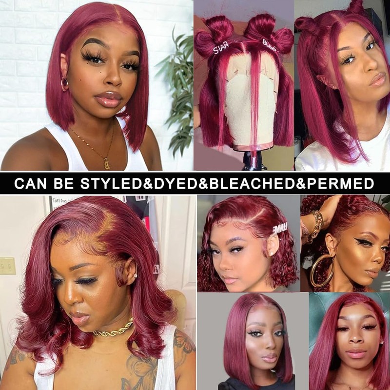 - ❤【HD Transparent Straight Lace Front 99J Burgundy BOB Wig Quality】:100% True To Length. No Tangle ,No Shedding,Straight.Healthy, Soft, Bouncy, No Impurities, No Strange Smell,Can Be Straightened, Curled,Bleached, Dyed, Permed, Durable,Reusable And Styled As Your Own Natural Hair;