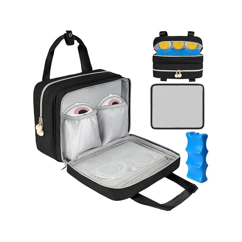 Wearable Breast Pump Bag with Cooler Compartment Compatible with Momcozy M5/S12 Pro, Elvie & Medela Pump in Style, Carrying Case with a Ice Pack & Waterproof Mat for Breast Pump and Accessories, Black