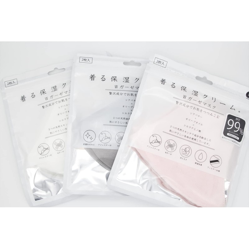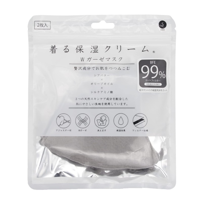 Wearable Moisturizing Cream, Double Gauze Mask, Set of 2, Adjuster Included, Gray, Size S