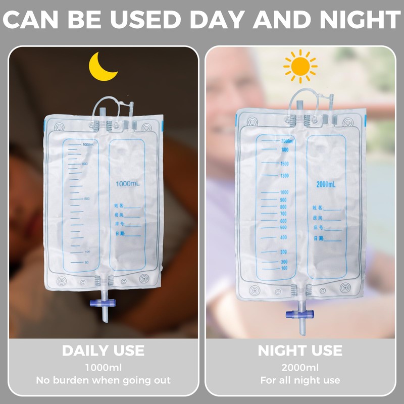 • 【Large Capacity】This urine collector comes with three high quality thickening 1000ml*2 and 2000ml*2 urine leg bags, urine rapidly drains from urinal into collection bag. Portable and easy to use.