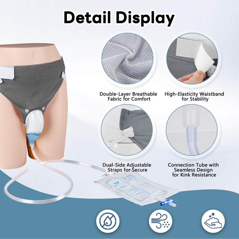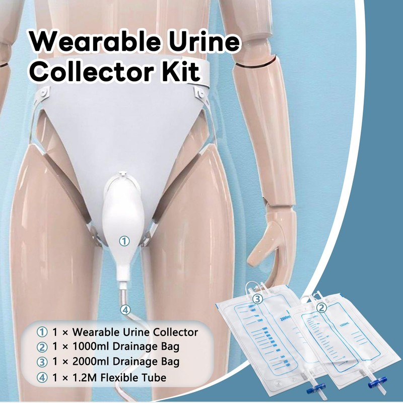 - Flexible and Convenient: The wearable urine collector includes a 1.2-meter catheter and two drainage bags (1000ml and 2000ml), offering flexibility for day or night use. The system is designed to support your comfort and mobility, ensuring ease of use wherever you go.