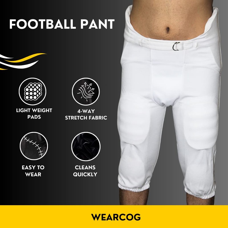 WEARCOG Deluxe Integrated Football Pants | White Adult 7 Padded Double Knit Practice Football Pants with Built-in Pads | Medium Size
