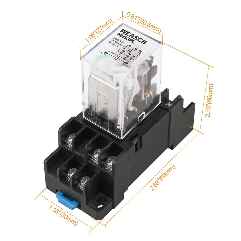Weasch 2Pcs Electromagnetic Power Relay, HH53PL, DC 12V Coil, 3P3T 3NO 3NC, 1...