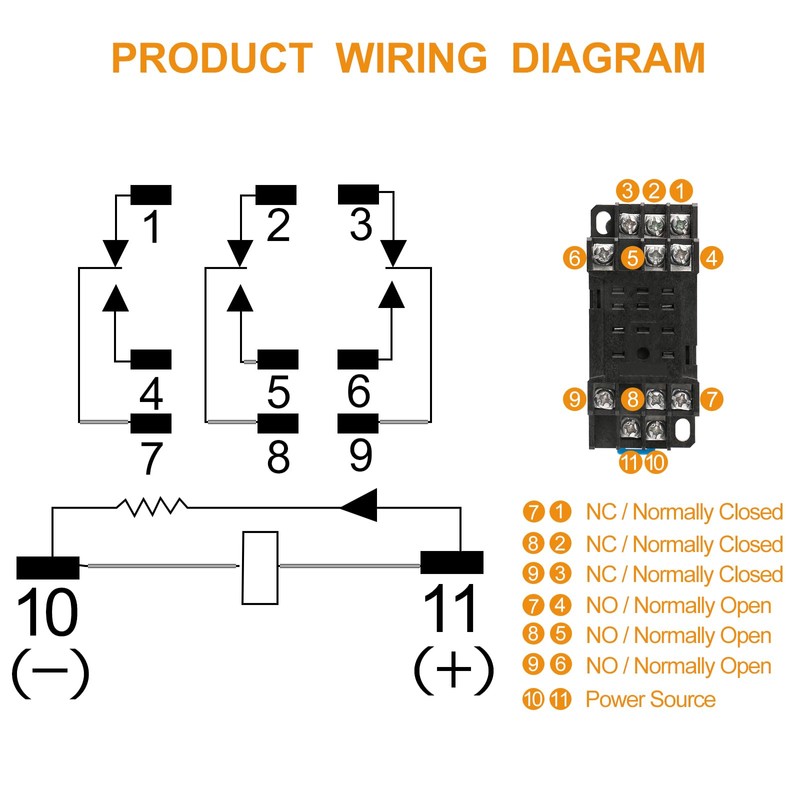 Weasch 2Pcs Electromagnetic Power Relay, HH53PL, DC 12V Coil, 3P3T 3NO 3NC, 11 Pins, LED Indicator Light, with Plug-in Terminal Socket Base (2)