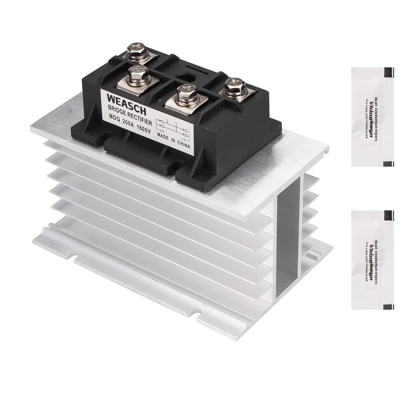 Weasch Bridge Rectifier MDQ 200A, AC to DC, 1600V 200A, Full Wave Diode Module Single-Phase, with Aluminum Heat Sink (1)
