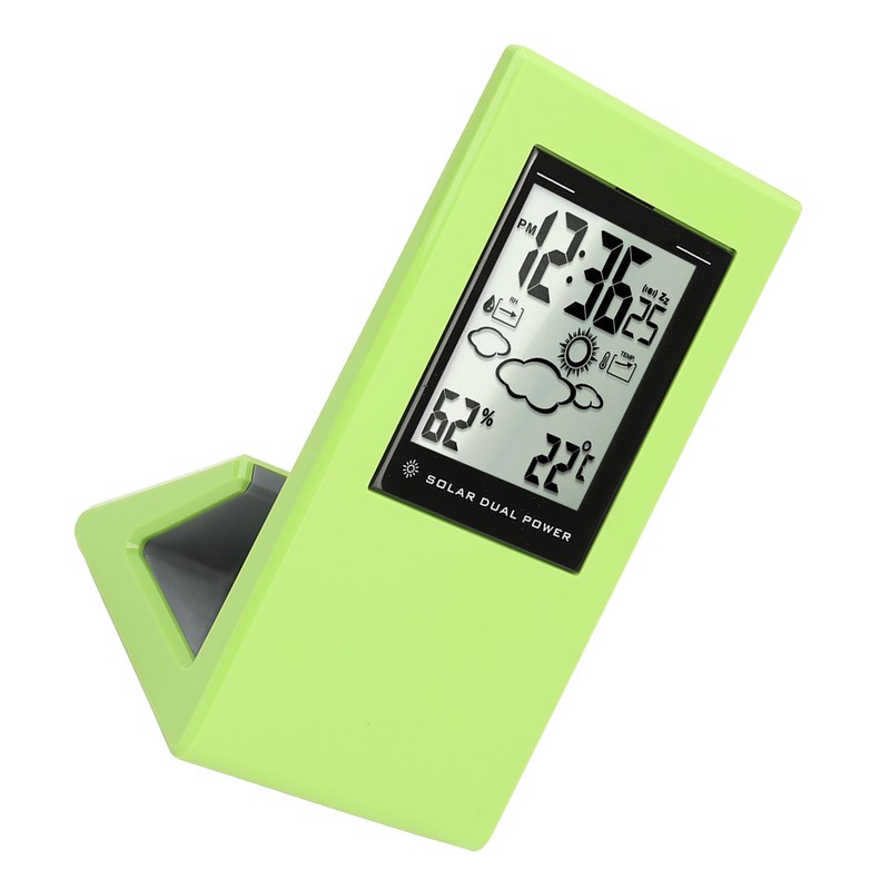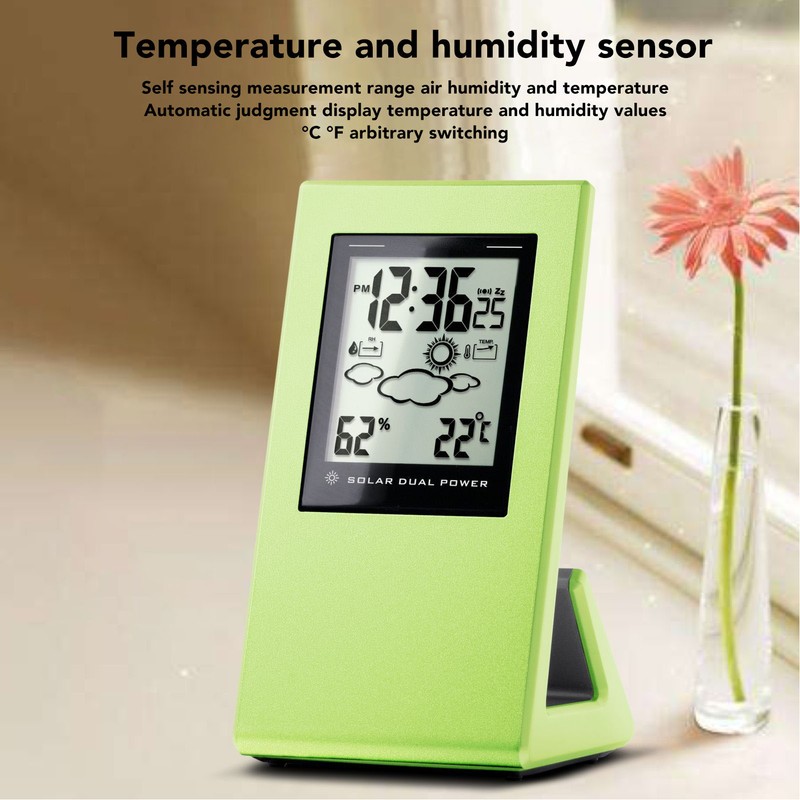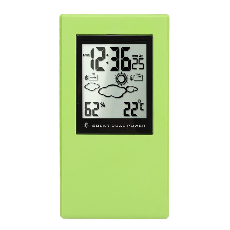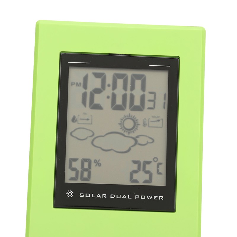 Weather Forcast Clock Solar Battery Powered Square LCD Display Timing Digital Temperature Humidity Meter for Home School Office Green