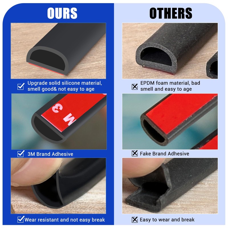 - Upgraded silicone material: Compared with other EPDM foam strips on the market, silicone weather stripping has higher density, better toughness, and stronger temperature resistance, so it is more wear-resistant and has a longer service life.