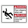 Weatherproof Plastic ANSI Danger Floor Slippery When Wet Bilingual Sign with English & Spanish Text and Symbol