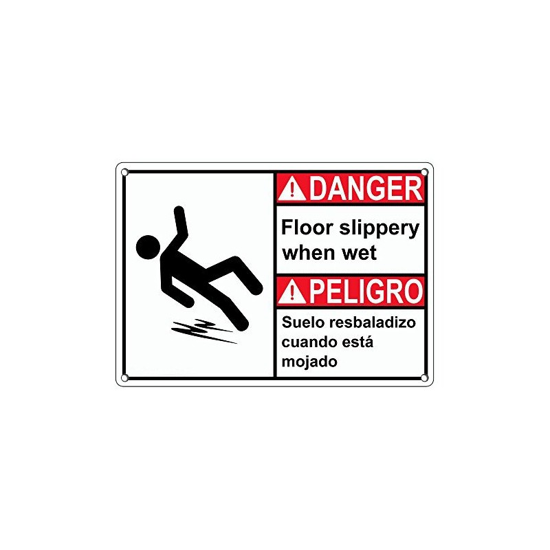 Weatherproof Plastic ANSI Danger Floor Slippery When Wet Bilingual Sign with ...