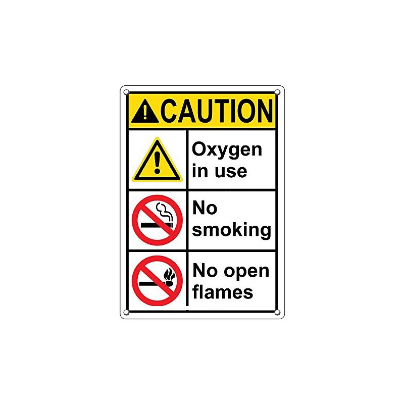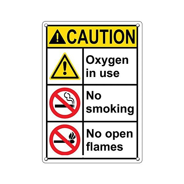 Weatherproof Plastic Vertical ANSI Caution Oxygen in Use No Smoking No Open Flames Sign with English Text and Symbol