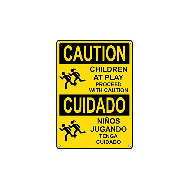 Weatherproof Plastic Vertical OSHA Caution Children at Play Proceed with Bilingual Sign with English & Spanish Text and Symbol