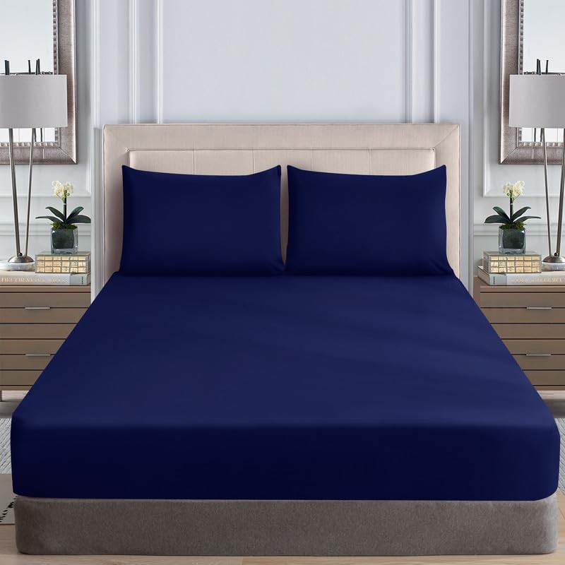 WEAVERS: Extra Deep Fitted Sheet - Super Soft Luxurious Microfiber, 40cm Deep Pockets, Elasticized design that ensures a snug fit. (Colour Navy Blue Size Double)