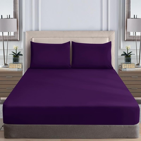 WEAVERS: Extra Deep Fitted Sheet - Super Soft Luxurious Microfiber, 40cm Deep Pockets, Elasticized design that ensures a snug fit. (Colour Purple Size Double)
