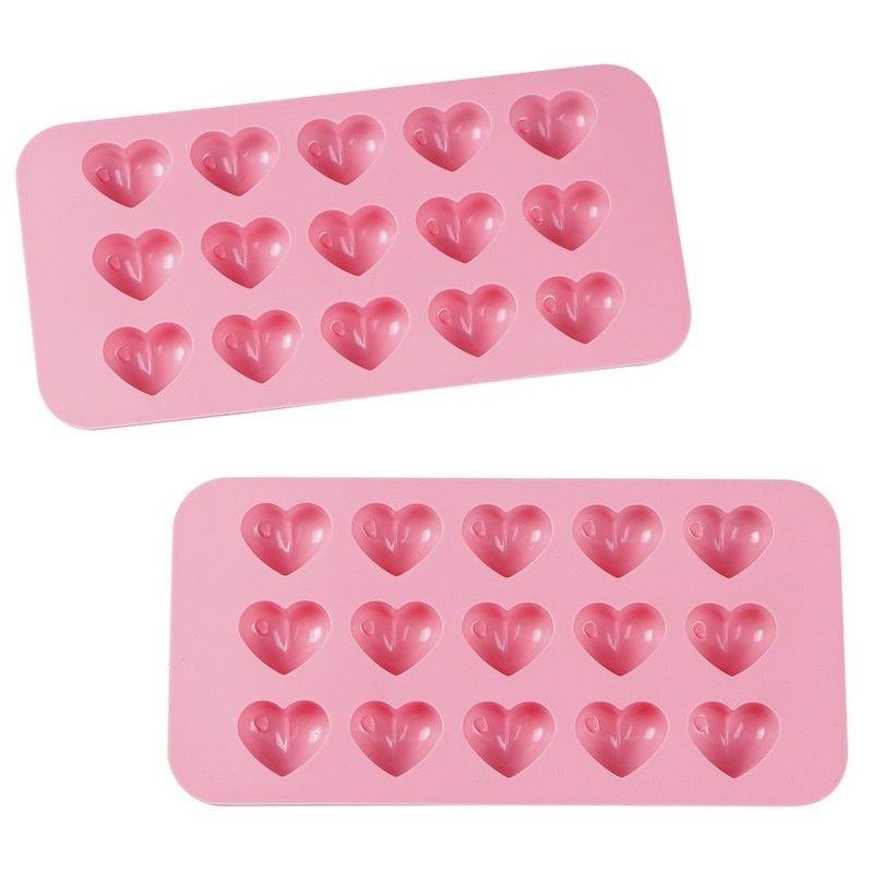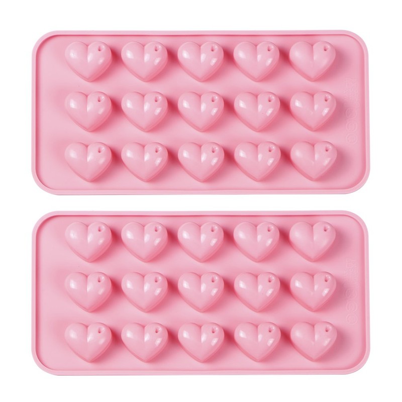 Webake Candy Molds Silicone Chocolate Molds, 15 Cavity Mold for Gummy, Jello, Fondant, Ice Cube, Crayon, Resin, Pack of 2 (Pink)