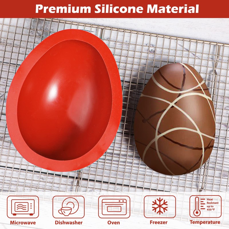 - REUSABLE, EASY TO USE AND CLEAN - Wash in dishwasher, or by hand. The silicone mold is flexiable and non-stick, pop out easily no need for using mold release. The egg chocolate making mold can be reused, also great for egg shaped easter mousse cakes.