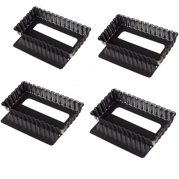 Webake Mini Tart Tins Quiche Tin with Loose Base Rectangular 4.5 inch Fluted Tart Tin 4 Pcak, Black