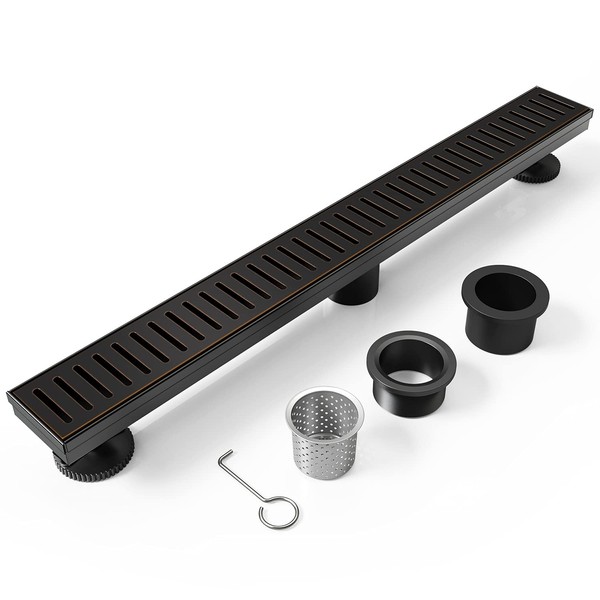 WEBANG 24 Inch Linear Shower Drain Rectangular Floor Drain with Accessories Capsule Pattern Cover Grate Removable SUS304 Stainless Steel CUPC Certified Oil Rubbed Bronze