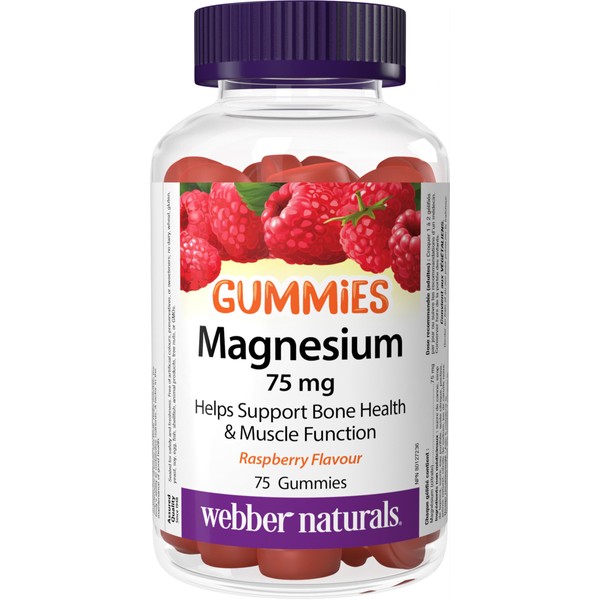 Webber Naturals Magnesium Gummy 75 mg, 75 Raspberry Flavoured Gummies, Supports Bone and Muscle Functions, Vegan