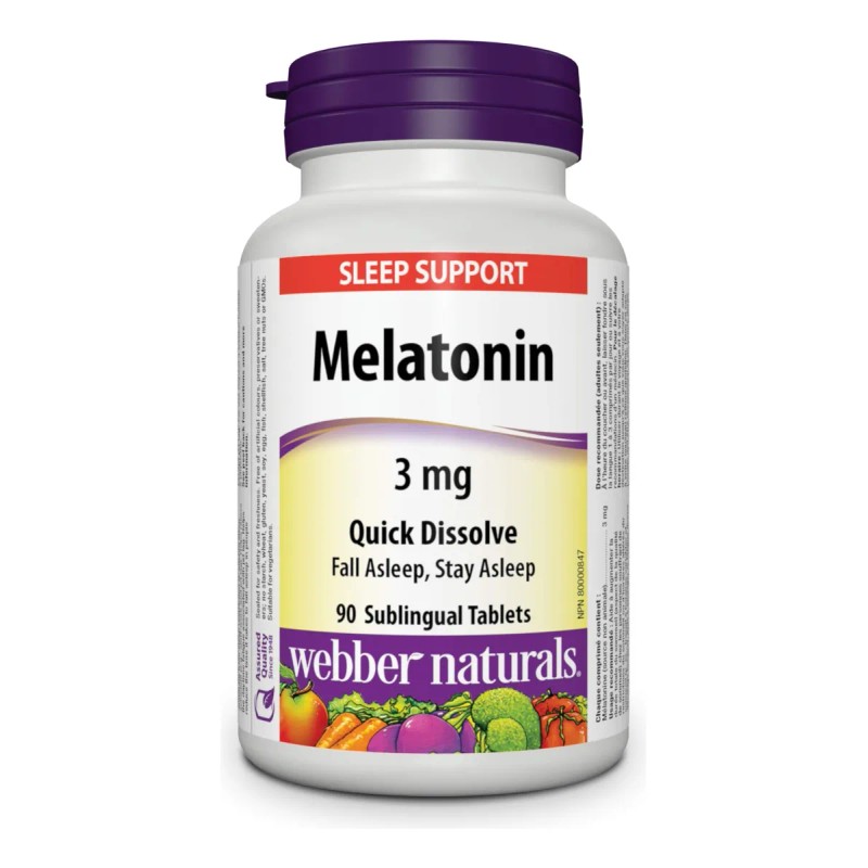 Webber Naturals Melatonina 3 mg sublingual – 90 comprimidos 🌙💊 | Suplemento natural que ayuda a conciliar el sueño rápidamente y a mejorar la calidad del descanso. Ideal para el insomnio ocasional, jet lag o rutinas alteradas. ¡Actúa en minutos! ✅