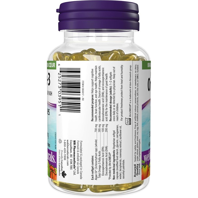 Webber Naturals Plant-Based Omega-3, 60 Softgels, Fish-Free Source of Omega-3, From Sustainably Cultivated Algae, Vegan