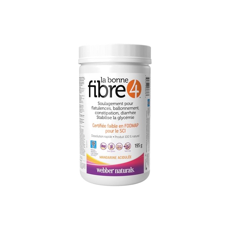 Webber Naturals Webber Naturals The Right Fibre4 IBS Intestinal Discomfort 195 g, Zesty Tangerine Flavour, 30 Servings, Fibre Supplement for Digestive Health, Low-FODMAP, Vegan
