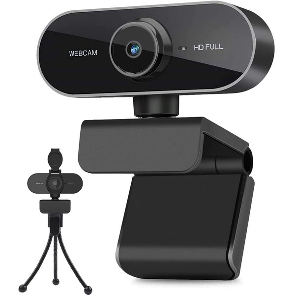 Webcam with Microphone and Tripod for PC, Desktop, Laptop, Plug and Play USB Web Camera with Privacy Cover, 1080P Full HD Webcam for Conference, Studying, Zoom, Skype, Compatible Windows, Mac Android