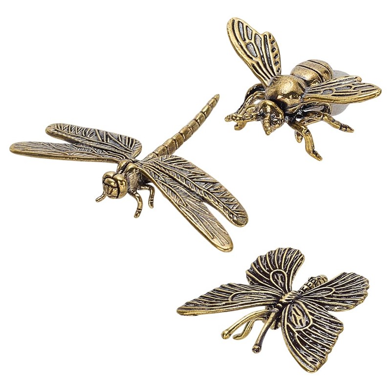 WEBEEDY 3 Styles Brass Butterfly Dragonfly Bee Figurines Gold Animal Figurines Mini Brass Animal Insects Statues Pond Landscaping Decorative Table Garden Indoor Outdoor Home Decor Unique Birthday Gift