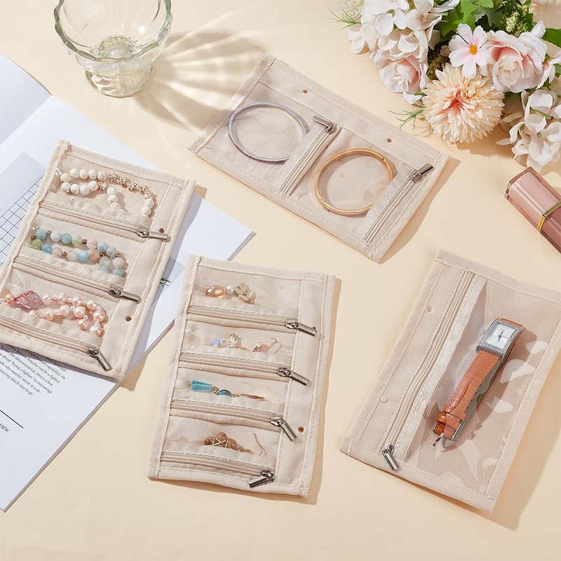 WEBEEDY 5 Styles Travel Jewelry Organizer Pouch mit Clear Zipper Pocket, Velvet Jewelry Pouches Travel Jewelry Bags for Rings Necklaces Earrings Bracelets, Beige