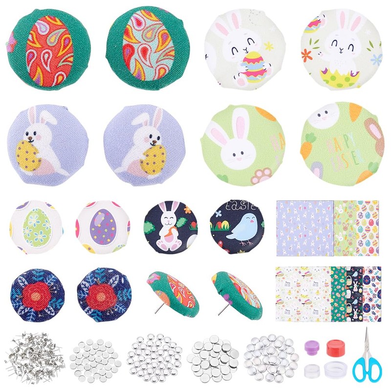 - Complete earring making kit: You can make 50 sets your own earrings, kit include 7 pcs Easter printed fabric, 2 set of bag button tools, 50 pcs flat bottomed buttons, 100 Pcs stud earring and 8mm needles and scissor