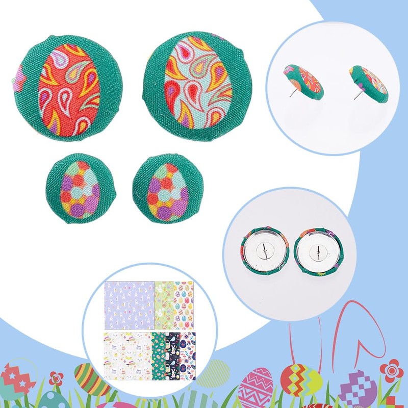 - Easter elements fabric button earrings: This earring kit provide exquisite Easter theme and fabric with rabbit, carrot, Easter egg elements, size about 20x20cm/7.87x7.87'' each. Rich printed fabric helps you create unique button earrings