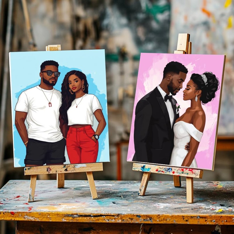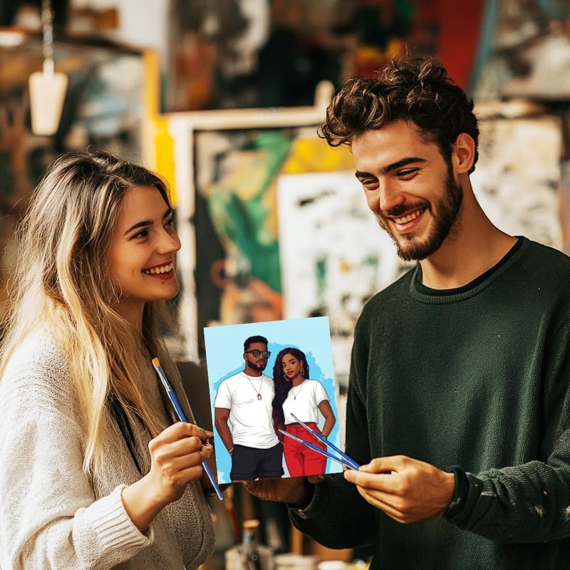 WEBEEDY Couples Pre Drawn Canvas Paint Party Kits 8 x 10 Inch Paint and Sip Kit Stretched Canvas Painting Set for Date Night Romantic Valentine's Day Christmas Anniversary Unique Gift,2 Pack 20x25cm