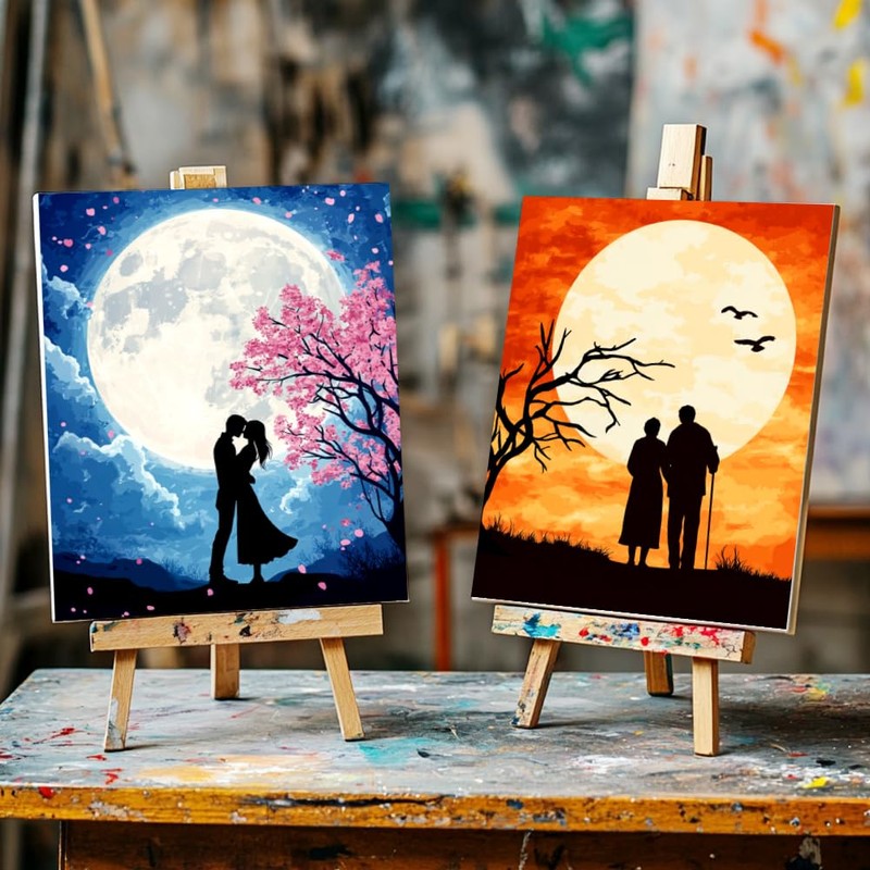 - Easy to paint: Pre drawn canvas painting kits have smooth and vivid lines with clear printing, including Canvas*2, Arcylic Colors*16, Paint Brush*6, Sample image*2. Suitable for couples, beginners and painting enthusiasts