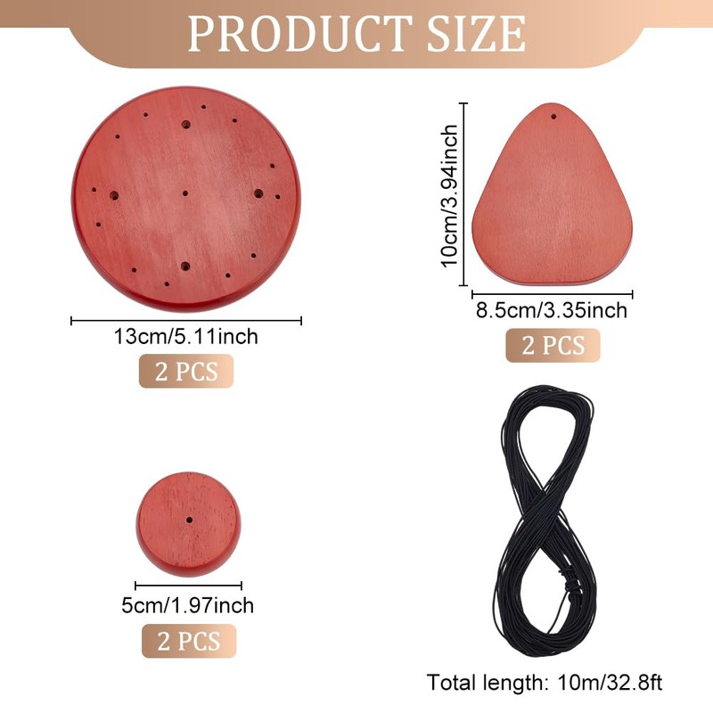 - Wooden repair parts: All the necessary parts of a windchime and tools to do the job are included, 2xwood round top, 2xwood clapper, 2xwind catcher, 2xs hook, 2xcord lock, 1x32.8FT nylon cord, 24xbrass pin, 2xneedle threader.