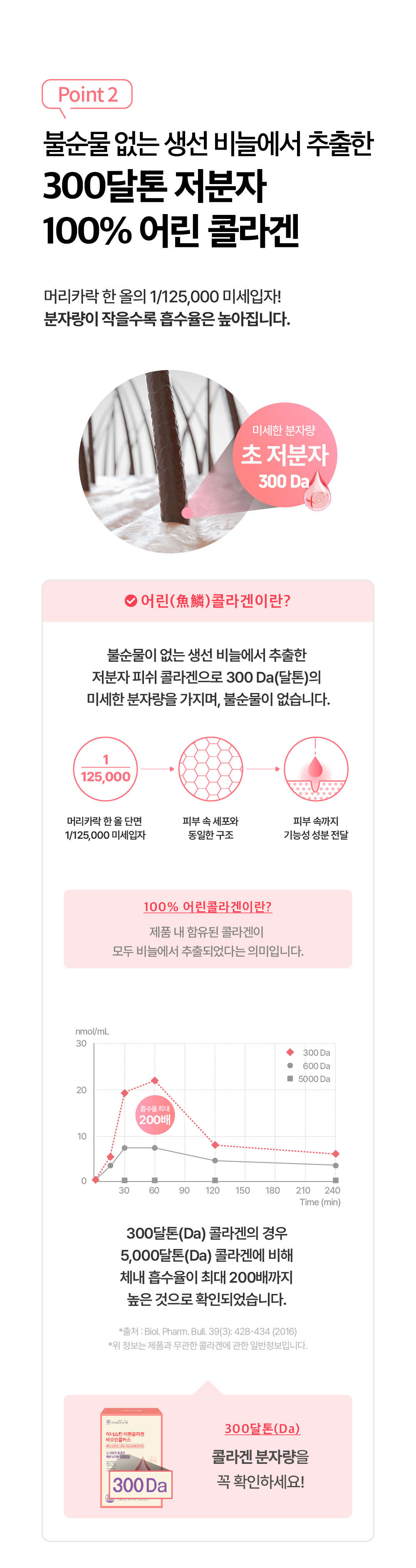 - function information: [Fish collagen peptides] can help maintain skin health from damage caused by UV rays and may assist in skin moisturization. [Biotin] is necessary for fat, carbohydrate, and protein metabolism and energy production. [Vitamin D] is essential for the absorption and utilization of calcium and phosphorus. It is required for bone formation and maintenance. It helps reduce the risk of osteoporosis.