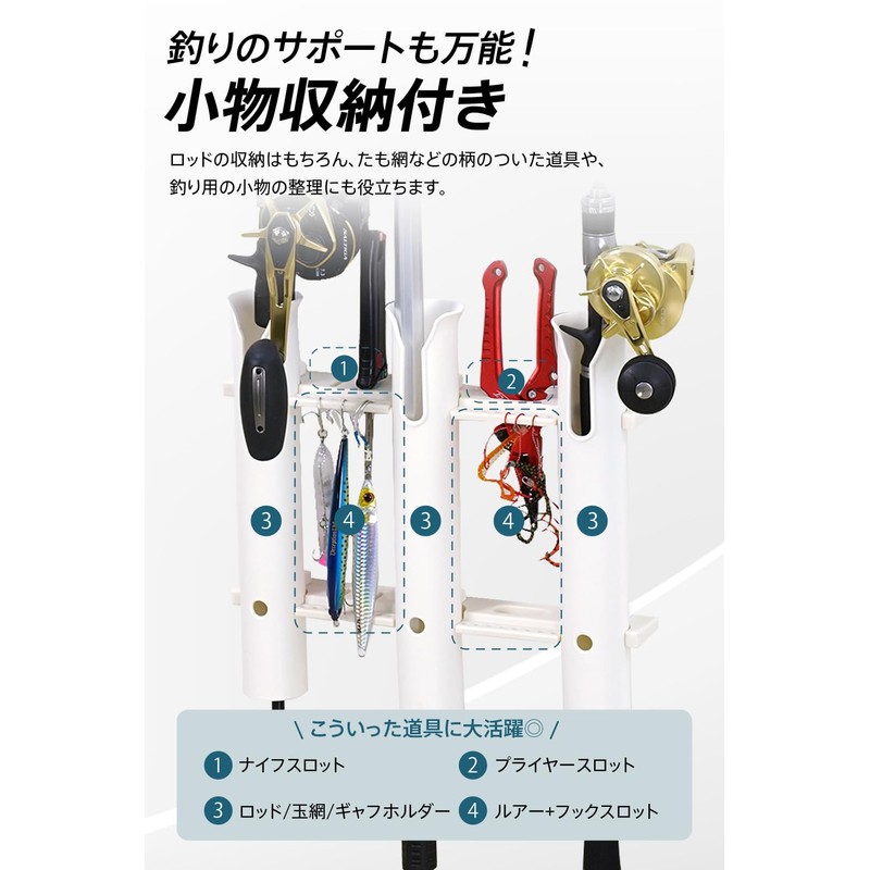 - Perfect for fishing. Includes Storage of Small Items: If you are fishing freely on a boat, you can try fishing lure fishing (jigs, tylabas, etc.), or use scissors or plugs to change the rigging, and you will find a lot of accessories that you want to keep it ready to use. In such cases, you can use the rod holder to store small items. Not only can you store the rods, but you can also organize and store various small items you don't want to leave it on your deck