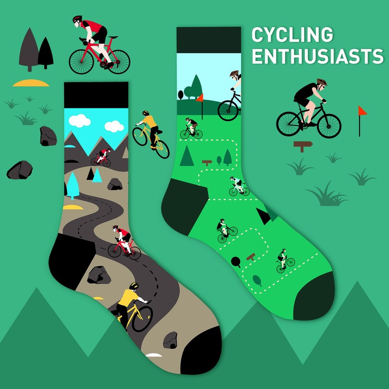 - Socks motif: themed design socks with bicycle, cycling, cycling equipment, cycling competition scenes, these fun socks are designed to celebrate cycling