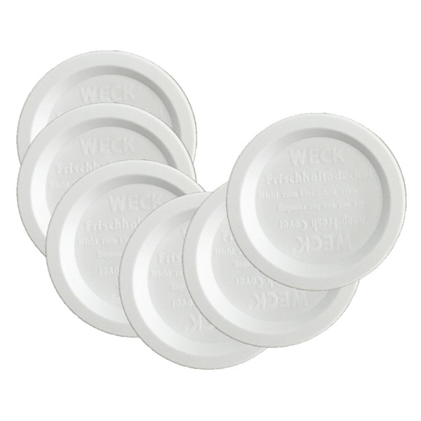 Weck Jar Keep Fresh Plastic Lids, 6 PACK (Small = 60mm). Fits models 080, 755, 760, 762, 902, 763, 764, 766, 905, 975, 995