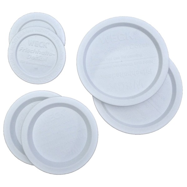 Weck Jar Keep-Fresh Plastic Lids Variety Pack. Includes 2 Small, 2 Medium and 2 Large lids (6 Items) Fits All Weck Jar Models