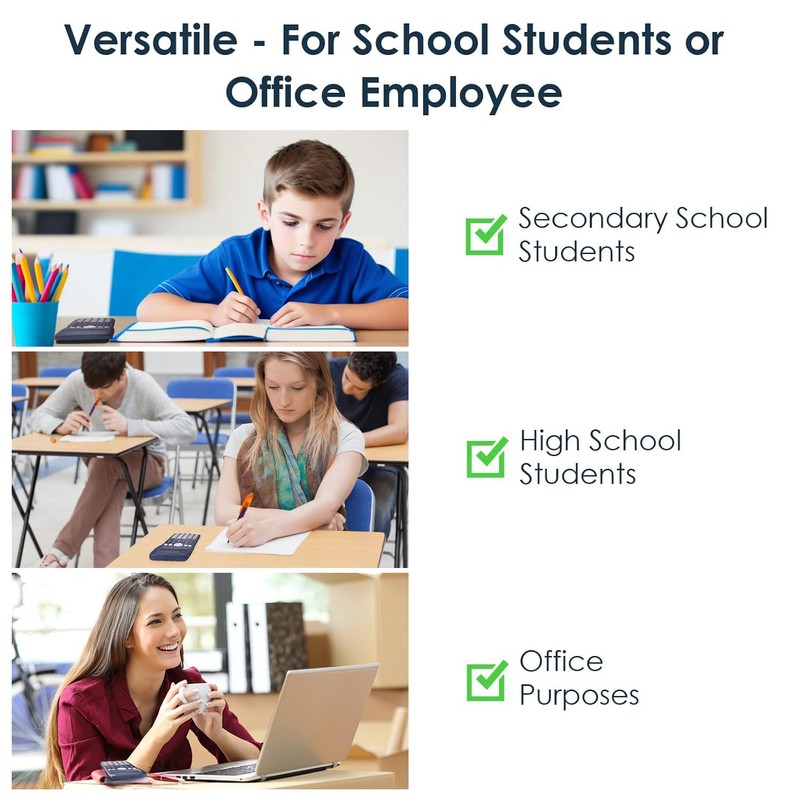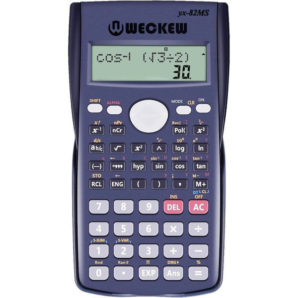 The WECKEW 82MS Scientific Calculator is a robustly designed calculator with systems capable of supporting heavy use. Its simple user interface and button layout make work a breeze for even the more inexperienced user. Yet with 240 functions including percentages, trigonometry, summation, fractions, regressions, and permutations/combinatorics. it is appropriate for any academic or business environment. Its dual-use LCD screen promotes accuracy and promotes easy correction of work.