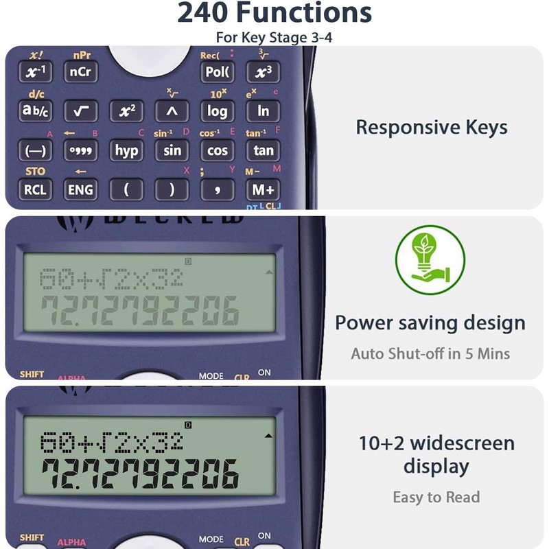WECKEW Scientific Calculator, Engineering Scientific Calculator with 240 Function 2-Line LCD Display - Suitable for School Students, Teachers and Business Use (Navy blue)