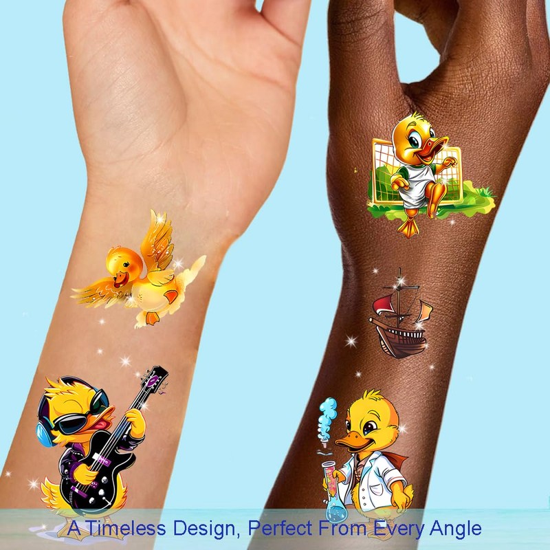 - 🦆 Premium Skin-Safe Ink: Crafted with hypoallergenic, non-toxic ink—dermatologist tested and free of parabens & heavy metals—for worry-free fun with every Duck tattoo.