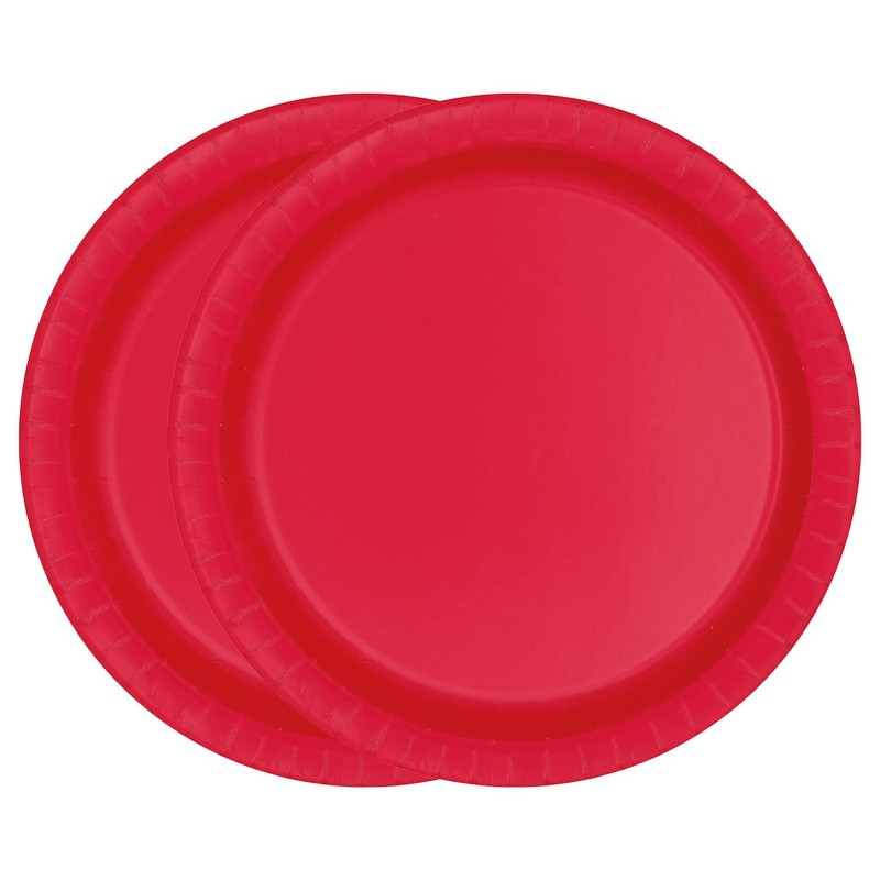 WedDecor Pack of 20 Paper Plates, 7" (18cm) Strong Round Disposable Paper Plates Perfect for Picnics, BBQ, Birthday, Baby Shower, Wedding & Christmas Events, Ruby Red